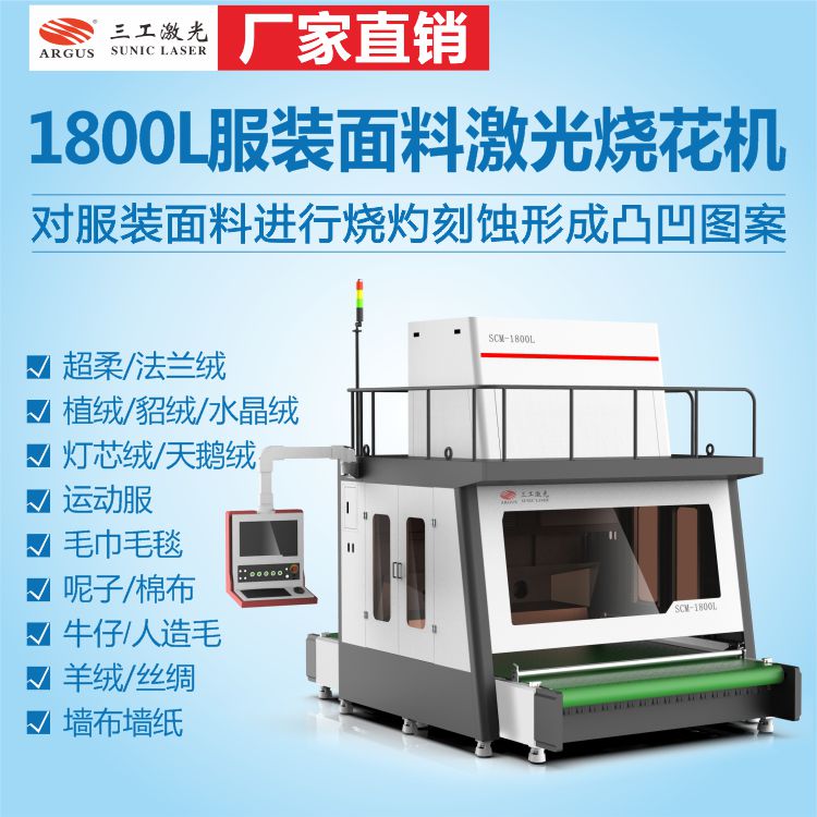 武漢三工服裝布料激光印花可以直接對(duì)服裝面料表面進(jìn)行凹凸花紋。雕刻均勻,生產(chǎn)效率高,幅面雕刻速度可達(dá)10m/min,能夠滿足各種服裝設(shè)計(jì)對(duì)布料的需求。該機(jī)運(yùn)行操作簡單,全自動(dòng)化,不需要添加水或任何化學(xué)產(chǎn)品,也不需要進(jìn)行排廢處理。